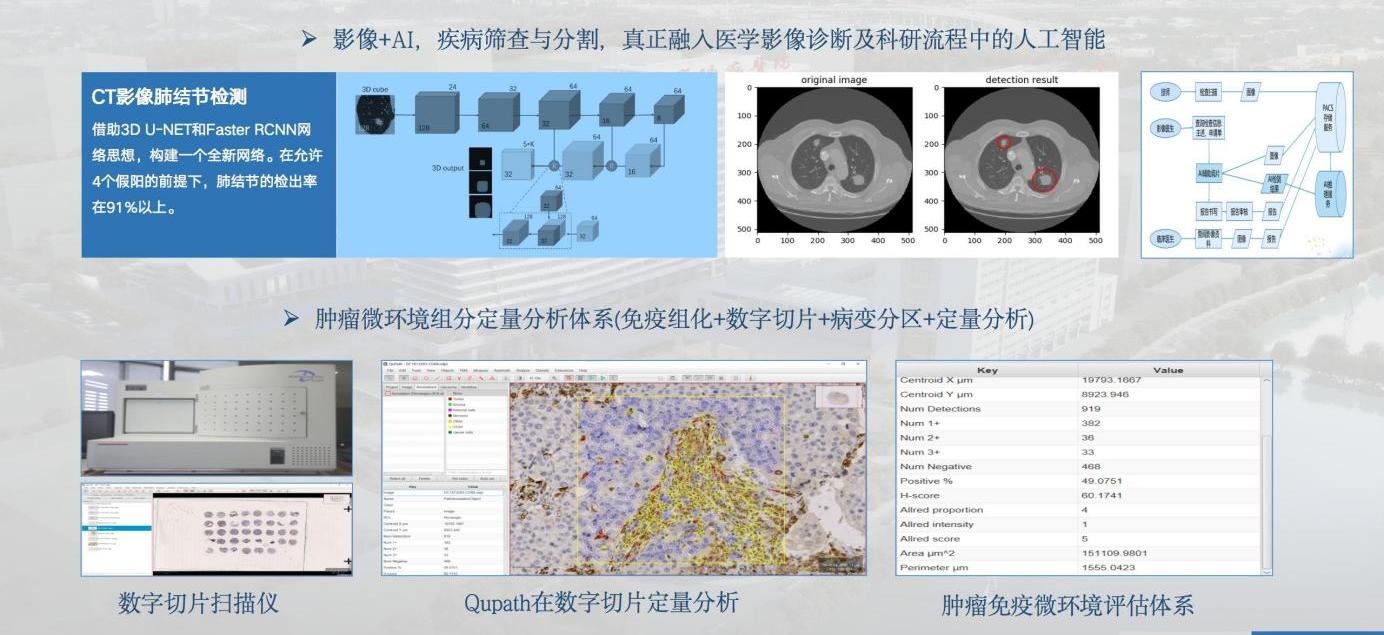 本研究中心积极整合肿瘤诊疗大数据平台与“杂交影像学”一体化研究平台,围绕临床重点癌种的诊断、治疗研究热点,努力攻克技术难题,力争实现高质量技术创新与转化,为学校“新医科”建设提供新动能。具体研究内容主要涵盖:(1)基于省域医疗大数据的影像筛查、诊疗大数据平台建设;(2)影像诊疗组学联合蛋白组学、病理组学一体化平台建设;(3)肺癌、乳腺癌、结直肠癌、宫颈癌等疾病的诊断、疗效评价和预后精准预测;(4)基于SUMO 化修饰的可视化探针开发及在乳腺癌影像组学联合诊断中的应用,以及后续癌肿延伸应用;(5)基于国家、省级平台,建立推广体系,申报科技进步奖,实现高质量转化。